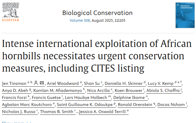 We are also very proud to have been a part of this very important paper about the growing trade of hornbills in Africa, driven by foreign demand.